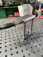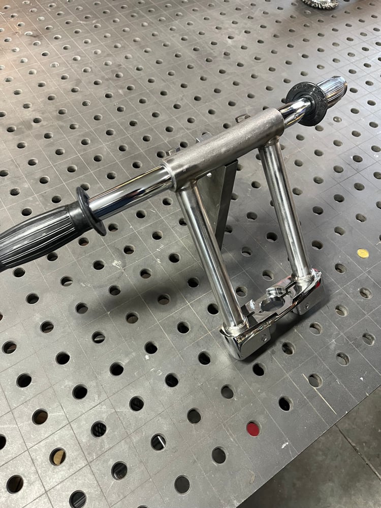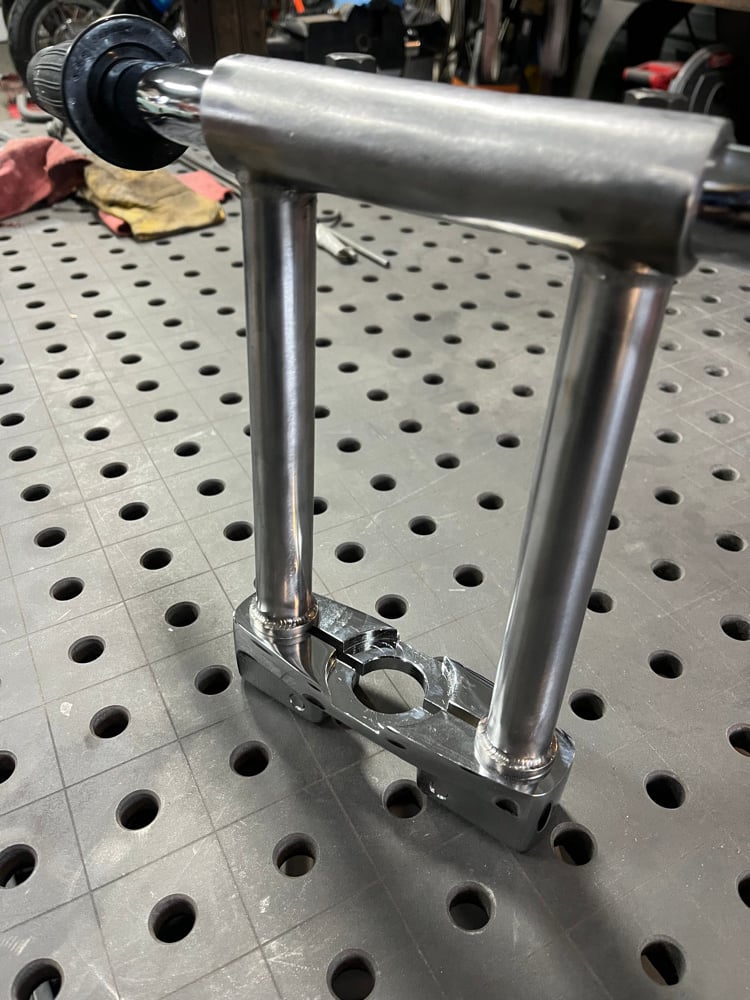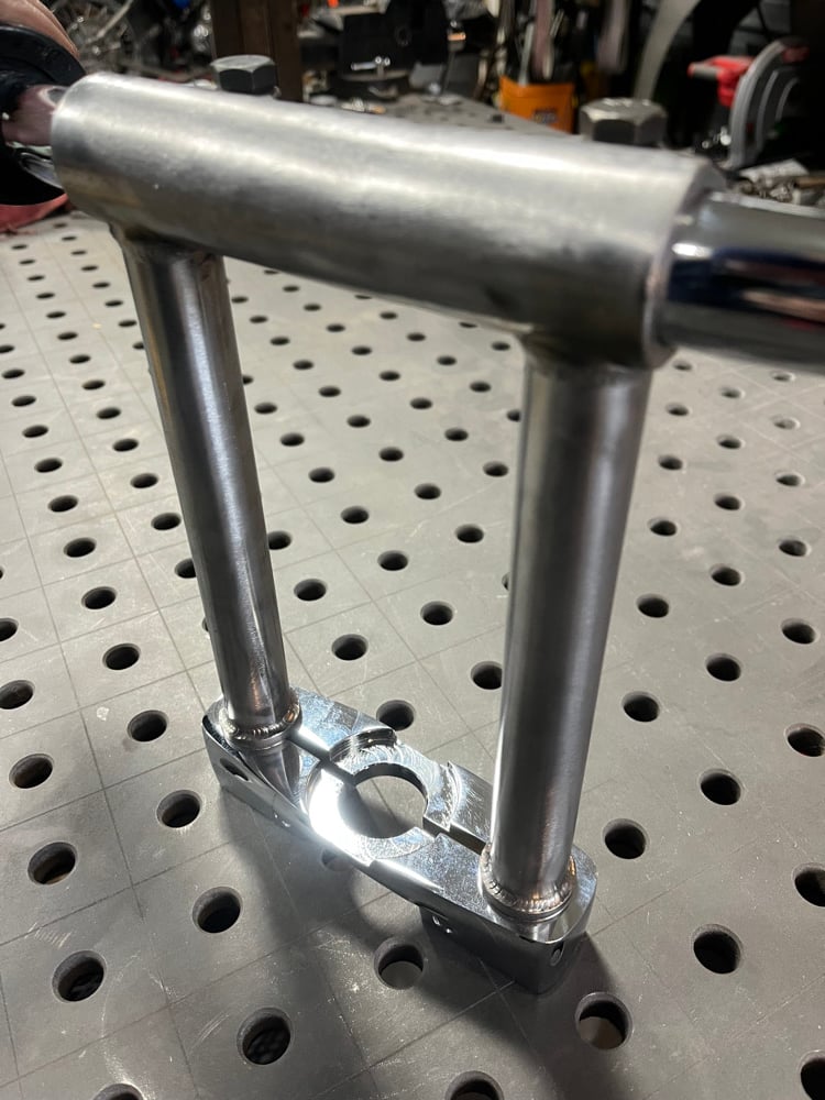 Widened/slugged/welded these function the same as a normal cast clamp just spaced for the wider Panhead tree and some springer riser spacing
